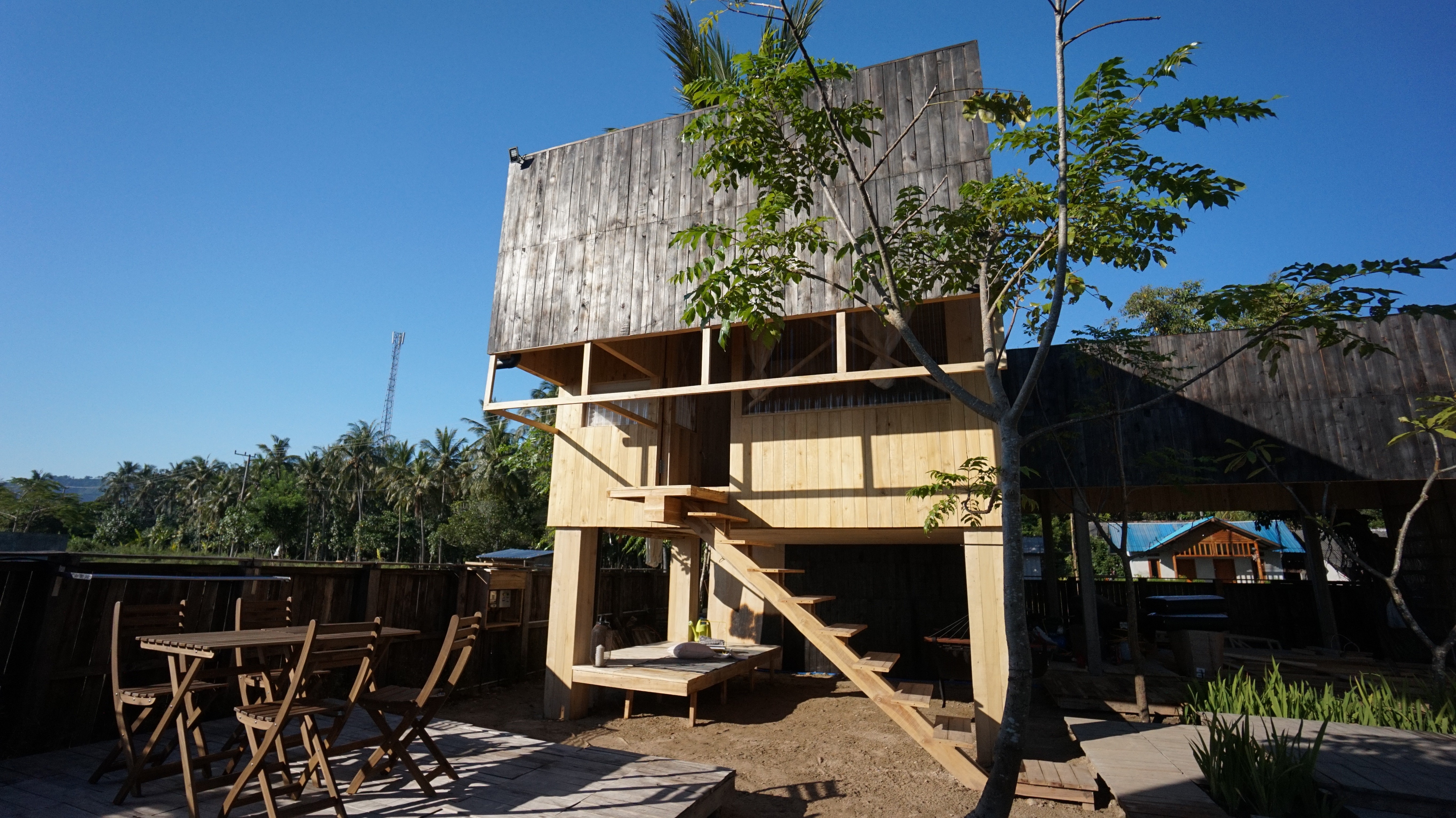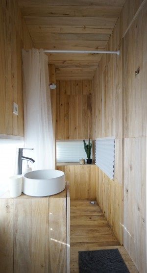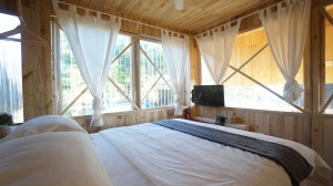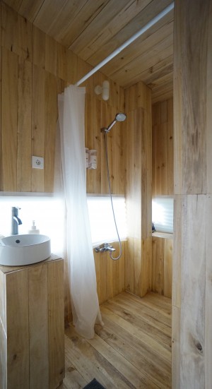 This is the third cabin with floating room style with fully wooden interior. All woods collected from local resources. This cabin fit with 2 peoples with the upstair room. And with a compact working desk. You will have access to all interior of a cabin that you booked.